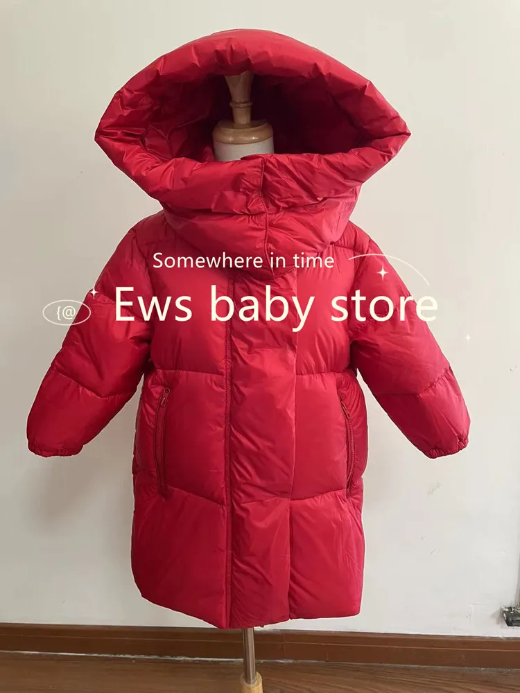Зимняя модная детская ветрозащитная Водонепроницаемая плотная теплая куртка с капюшоном, верхняя одежда, куртка на 90% белом утином пуху для мальчиков и девочек A1641