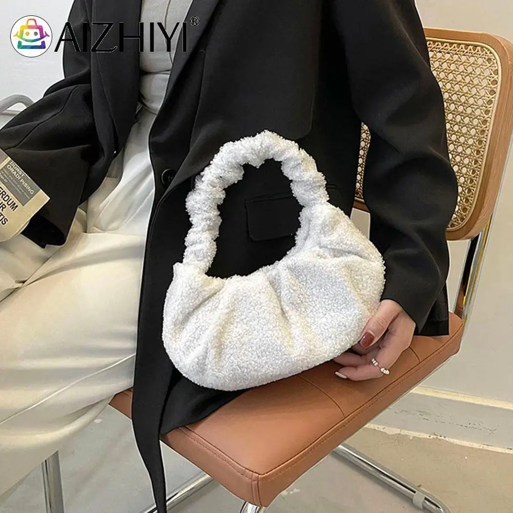 Зимняя модная сумка через плечо с полумесяцем, Женская однотонная плюшевая осенне-зимняя плюшевая сумка большой емкости с принтом под подм...