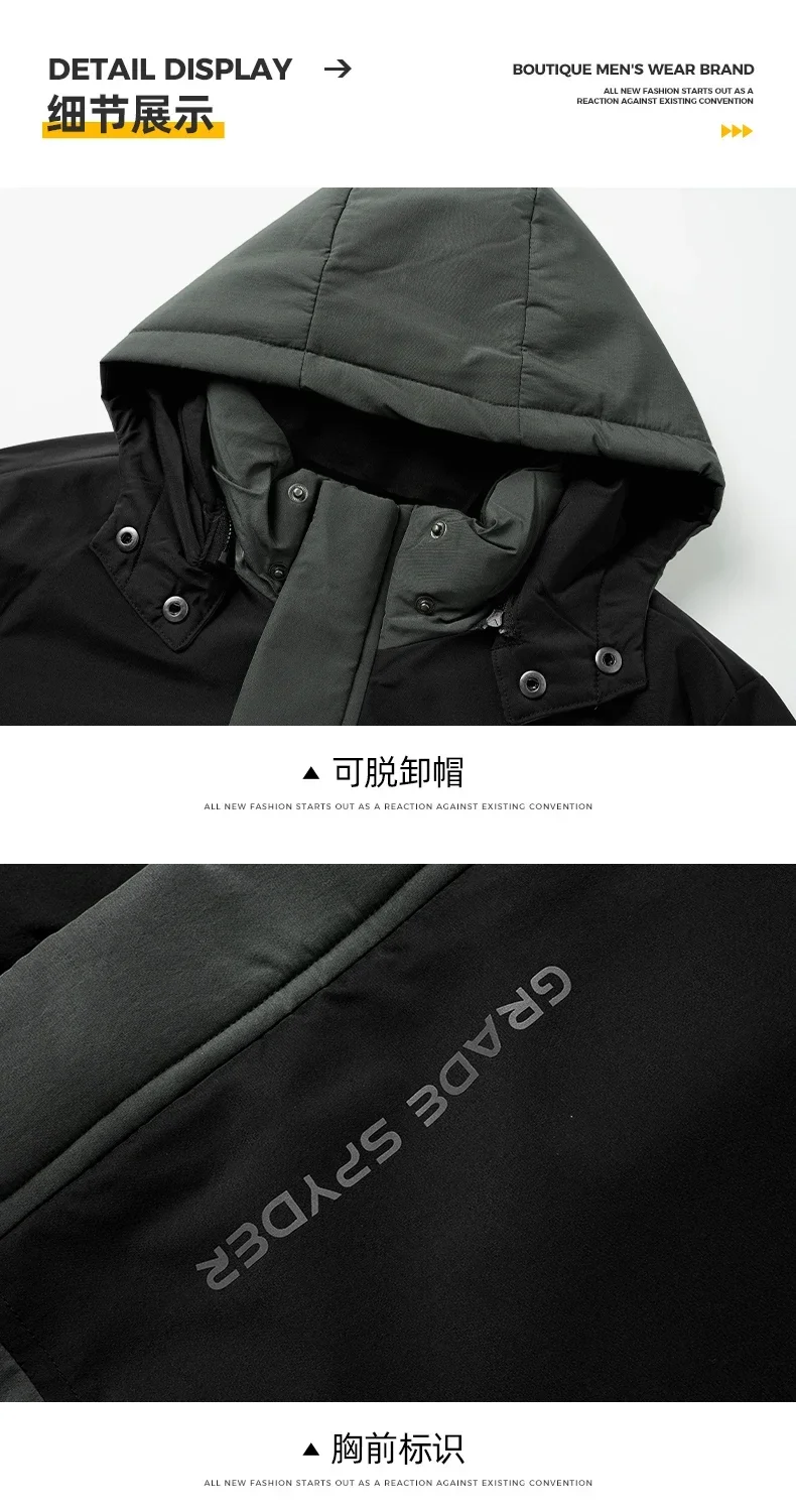 Зимняя мужская новая повседневная парка с капюшоном, ветрозащитное теплое пальто, утепленная хлопковая модная хлопковая мужская парка с капюшоном, большие размеры