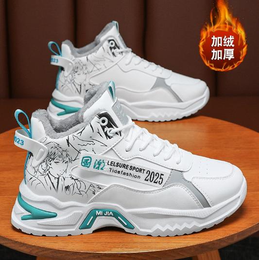 Зимняя мужская обувь, новые дышащие туфли, мужская мода, универсальная толстая подошва, плюс кашемир, теплая хлопковая обувь, кроссовки H828 39 бежевый
