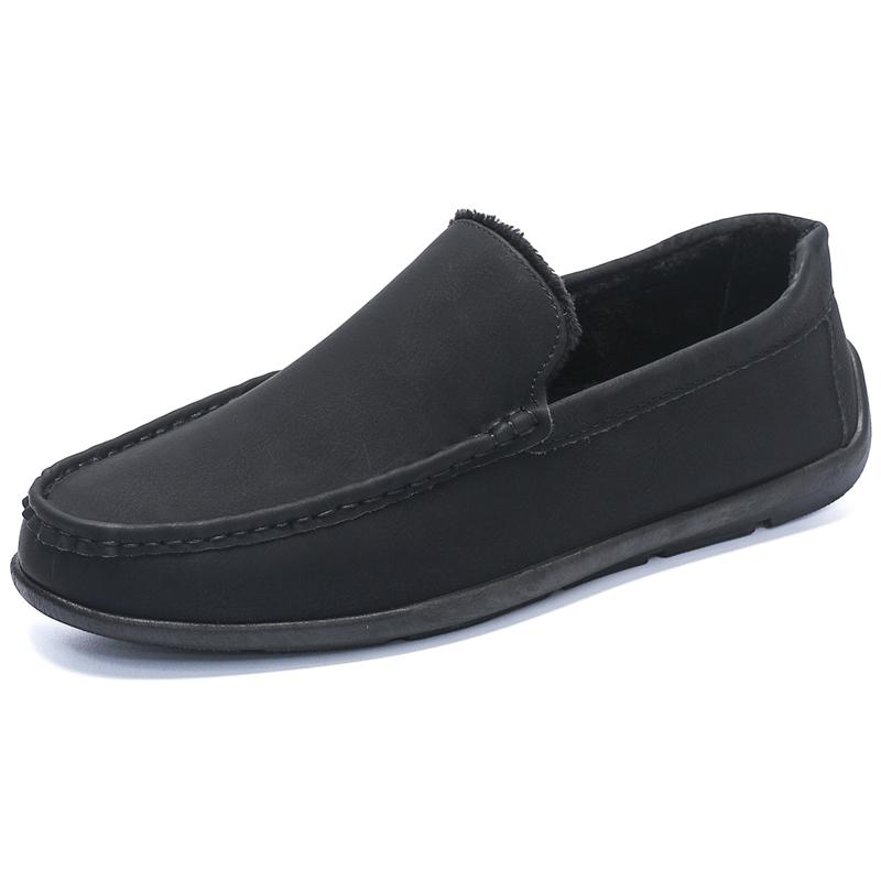 Зимняя мужская повседневная обувь дышащая плоская обувь для ходьбы слипоны формальные лоферы мужские для вождения бобы новая низкая ленивая 39 чёрный