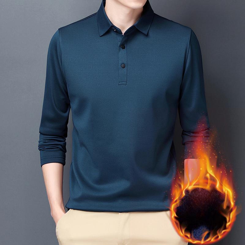 Зимняя мужская рубашка среднего возраста с длинным рукавом, утолщенная флисовая однотонная теплая мужская деловая повседневная футболка, рубашка поло M