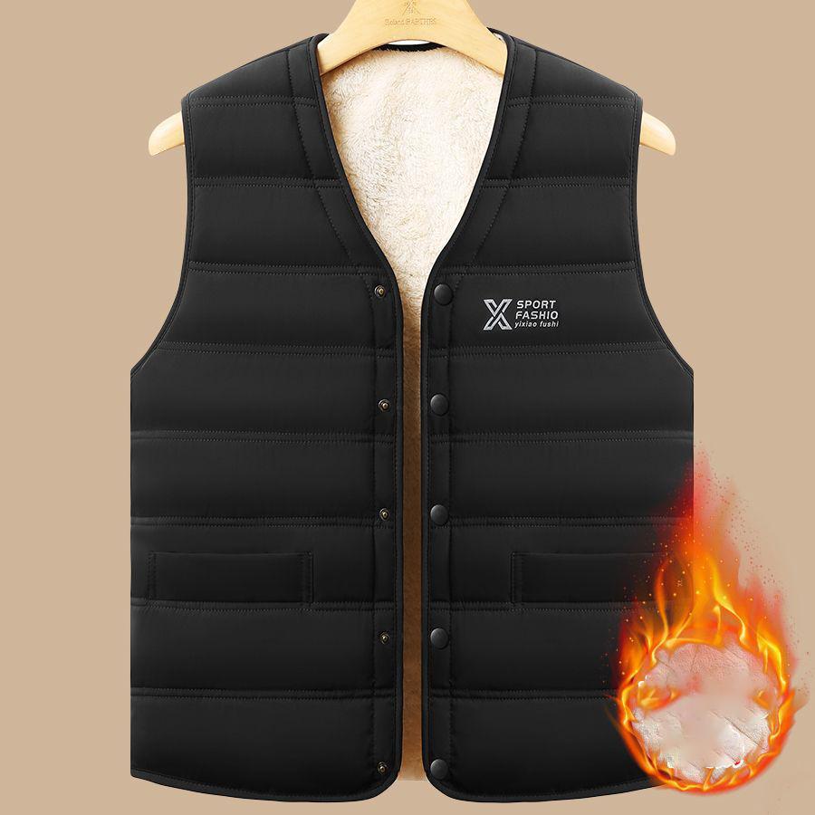 Зимняя мужская флисовая теплая жилетка-куртка с принтом букв, ветрозащитная шерстяная подкладка, теплая, с V-образным вырезом, повседневные пальто, утепленная, утолщенная, для улицы M чёрный