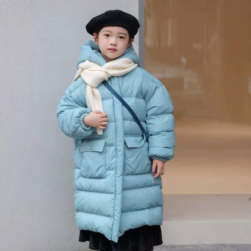 Зимняя новая детская куртка-пуховик из белого утиного пуха, выше колена, толстая хлопковая куртка для мальчиков и девочек с капюшоном 160cm