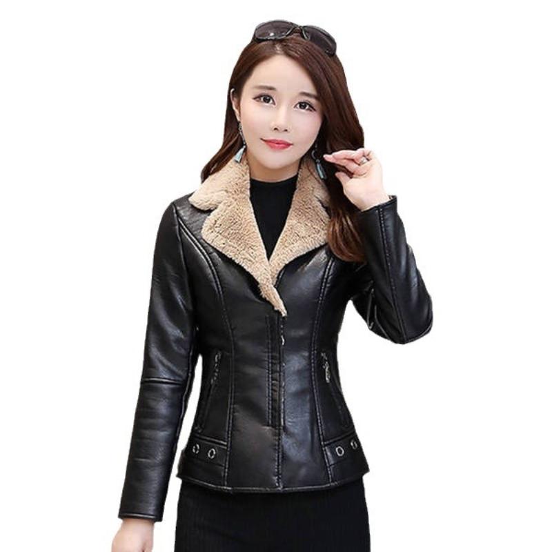 Зимняя новая короткая кожаная куртка женская утолщенная и бархатная теплая и тонкая куртка из искусственной кожи 3XL