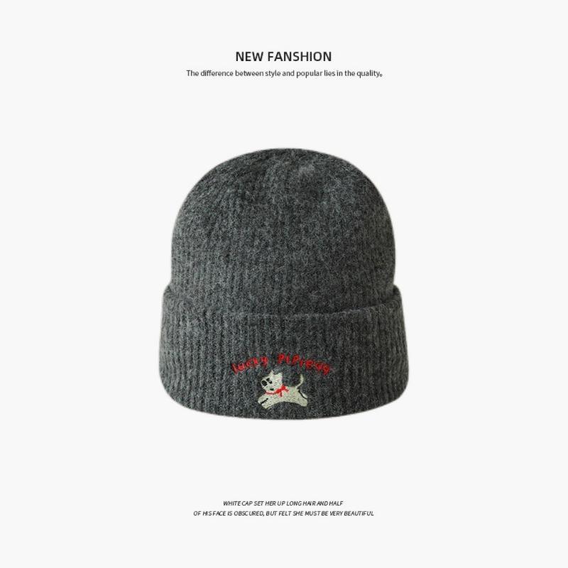 Зимняя новая милая вышивка щенка теплая вязаная шапка от холода шерстяная шапка женская лицо маленькая универсальная большая окружность головы шапка