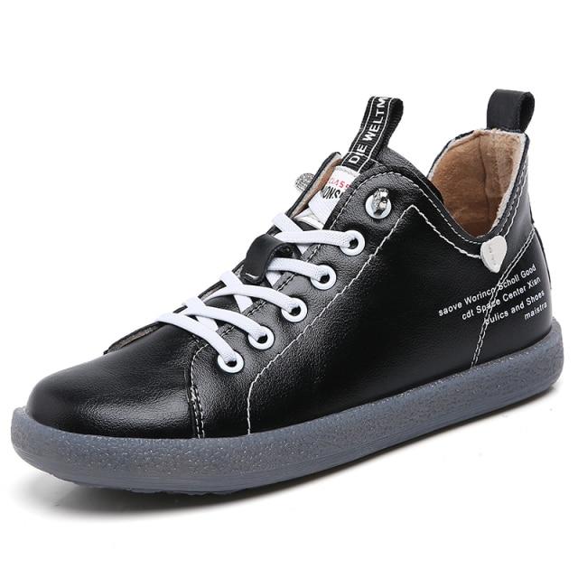 Зимняя новая модная женская обувь с высоким берцем из кожи, хлопка и шнурка, флисовая осенне-зимняя уличная спортивная обувь, теплая женская обувь 38 чёрный