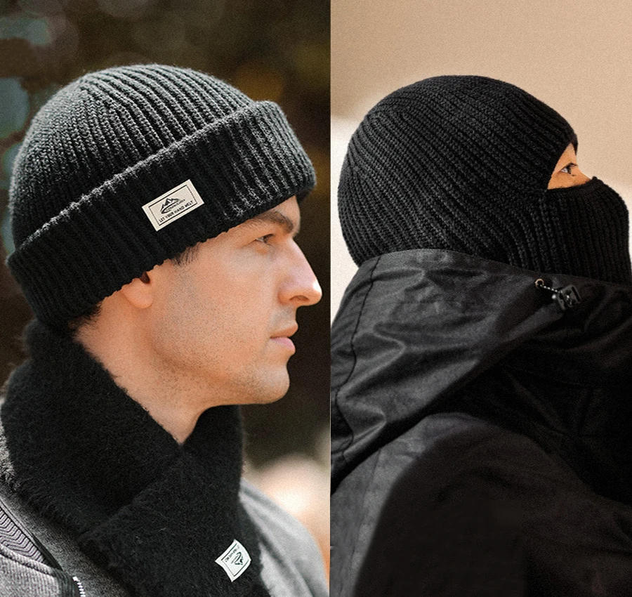 Зимняя новая модная мужская вязаная шапка для улицы утолщенная теплая шерстяная шапка для холодной езды велосипедная маска Балаклава двой...