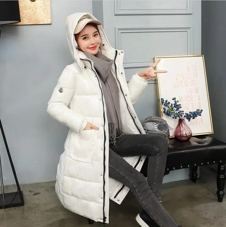 Зимняя новая темно-синяя зимняя женская длинная парка с капюшоном 2019 зимняя теплая куртка Женские яркие пальто тонкие толстые большие разм...