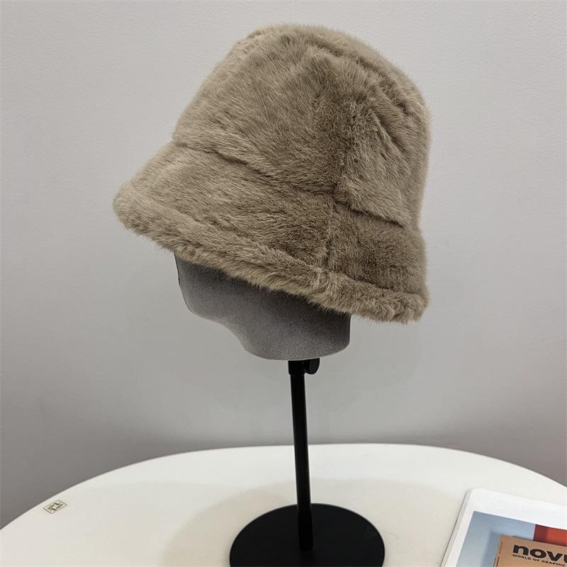 Зимняя новая утолщенная плюшевая шляпа-ведро из искусственного кроличьего меха, женская, для защиты от холода на севере, с ушками, модная M(56-58cm) хаки