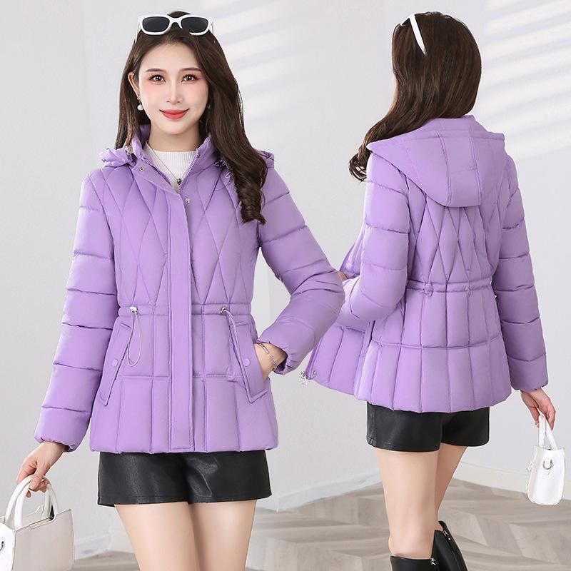 Зимняя новая хлопковая одежда женская короткая приталенная тонкая хлопковая одежда с капюшоном теплая хлопковая куртка 6XL фиолетовый