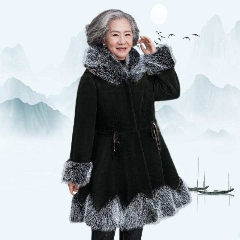 Зимняя новая шуба из искусственного меха норки с капюшоном средней длины, комплект для мамы, пальто для среднего и пожилого возраста, женская одежда больших размеров S чёрный