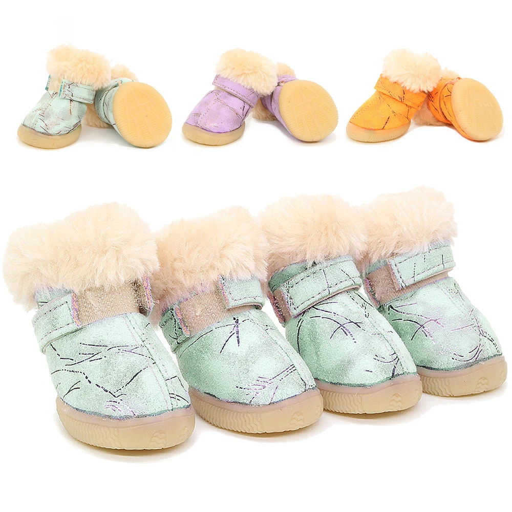 Зимняя обувь для маленьких собак и кошек, 4 шт., теплые зимние ботинки для домашних животных, нескользящая модная Толстая шерстяная обувь для...