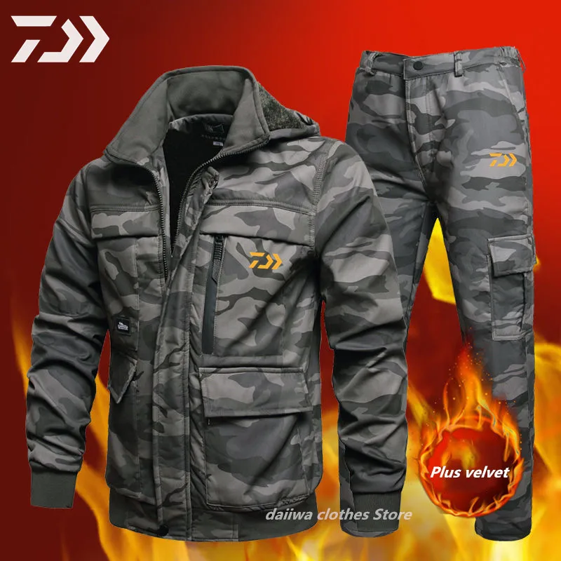 Зимняя одежда для рыбалки, уличный костюм для рыбалки специального назначения, бархатные утепленные камуфляжные штаны из чистого хлопка с ...
