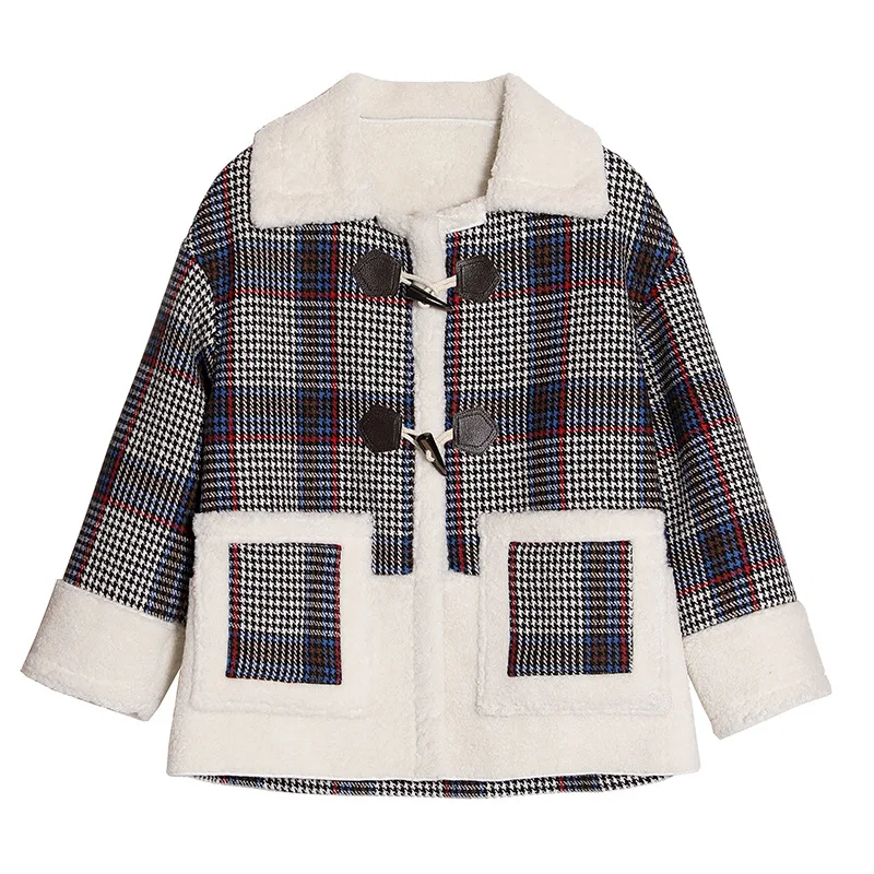 Зимняя одежда женское клетчатое шерстяное пальто большого размера Европейская и американская утепленная Осенняя Повседневная шерстяная к...