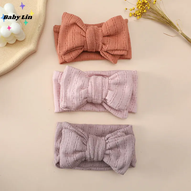 Зимняя, осенняя, широкая Детская повязка на голову, милая, большая, с бантом, мягкая, эластичная, однотонная, повязка на голову для новорожденных, девочек