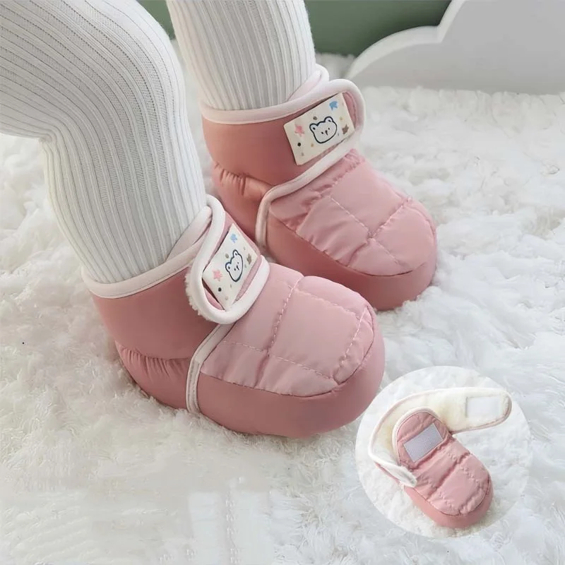 Зимняя плюшевая толстая обувь для новорожденных для мальчиков и девочек, модная теплая противоскользящая прогулочная обувь для малышей, первые ходунки на мягкой подошве
