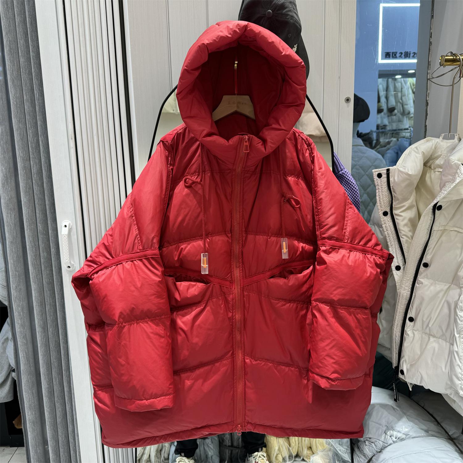 Зимняя пуховая куртка женская средней длины с капюшоном большого размера свободная толстая куртка one size красный