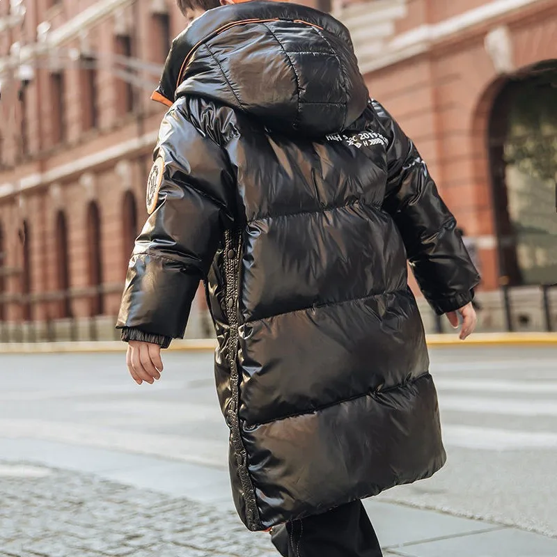 Зимняя пуховая хлопковая куртка, водонепроницаемая глянцевая ткань для мальчиков и девочек, длинная стильная ветровка, пальто, детский ули...