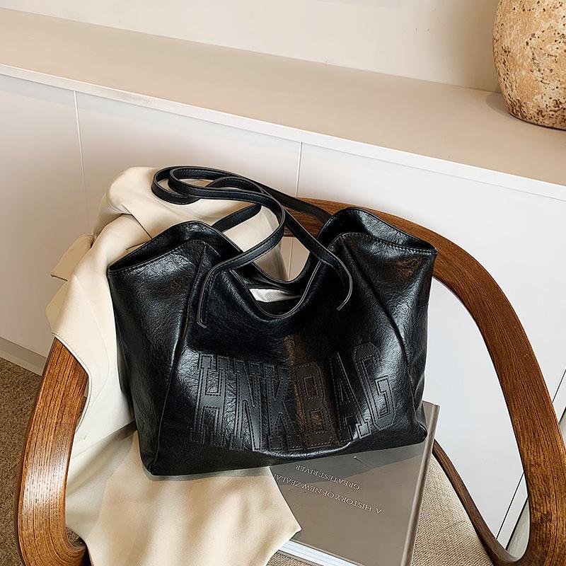 Зимняя ретро большая сумка женская 2025 трендовая новая нишевая дизайнерская сумка-тоут большая вместимость универсальная на плечо под мышку чёрный