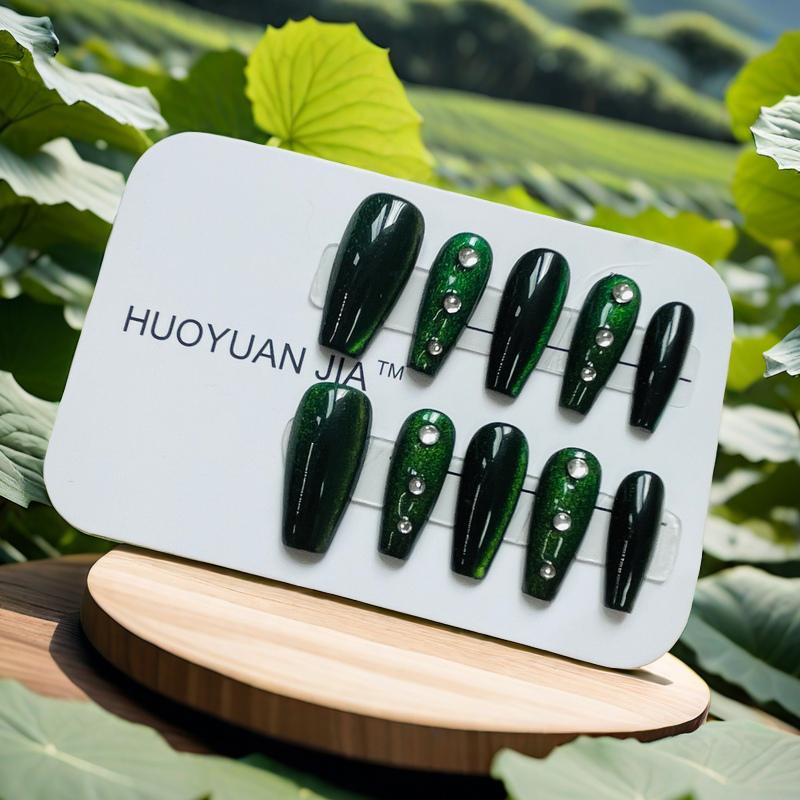 Зимняя роскошь Зеленый Стразы Пресс на ногтях Клей на ногтях для начинающих XS:(14,10,11,10,8)mm