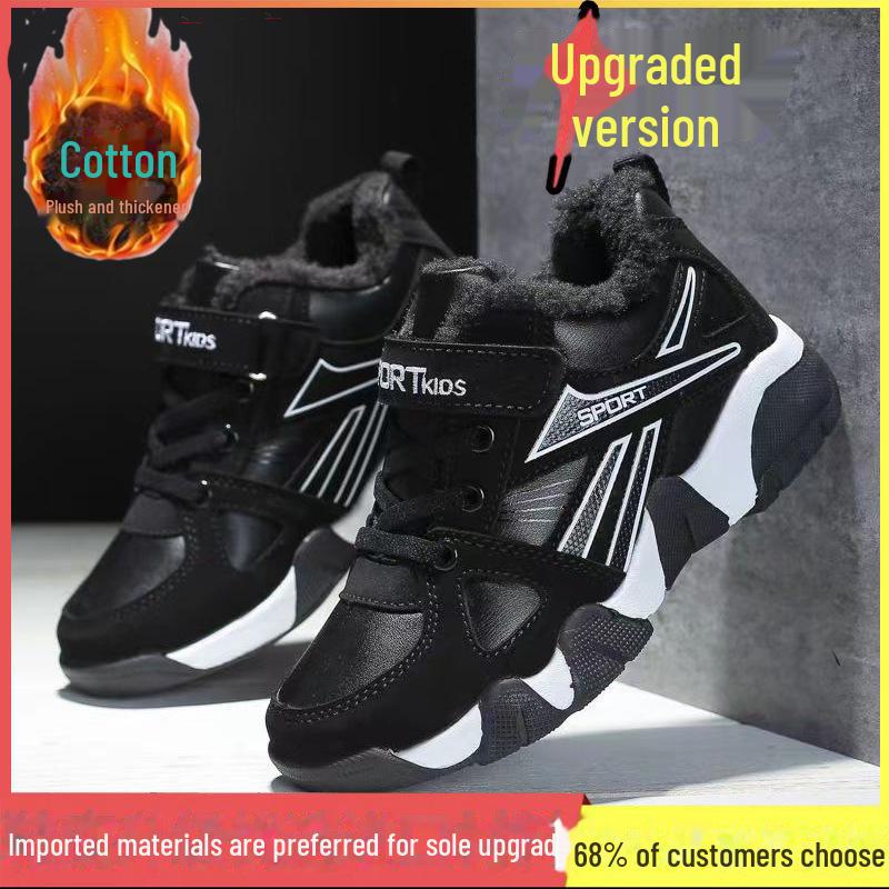 Зимняя спортивная обувь из хлопка для мальчиков: Теплый, нескользящий, с бархатной подкладкой для детей среднего и большого размера 35 белый/чёрный