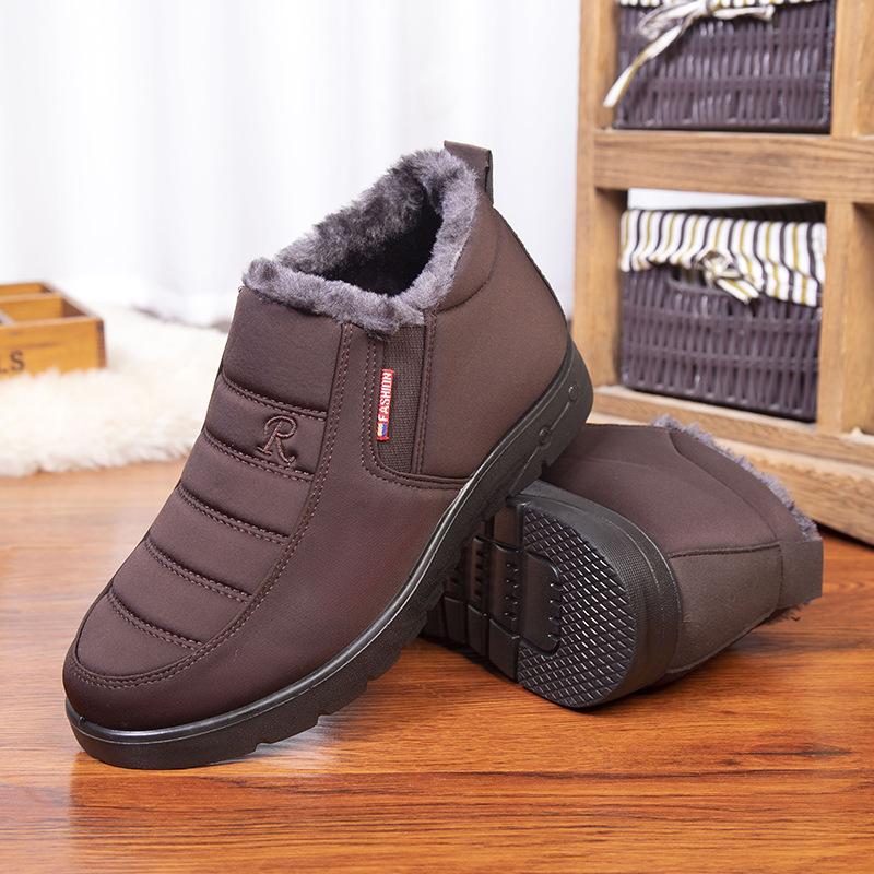 Зимняя старая хлопковая обувь, мужская водонепроницаемая нескользящая теплая, плотная и тяжелая легкая обувь для папы среднего и пожилого возраста 44 кофейный