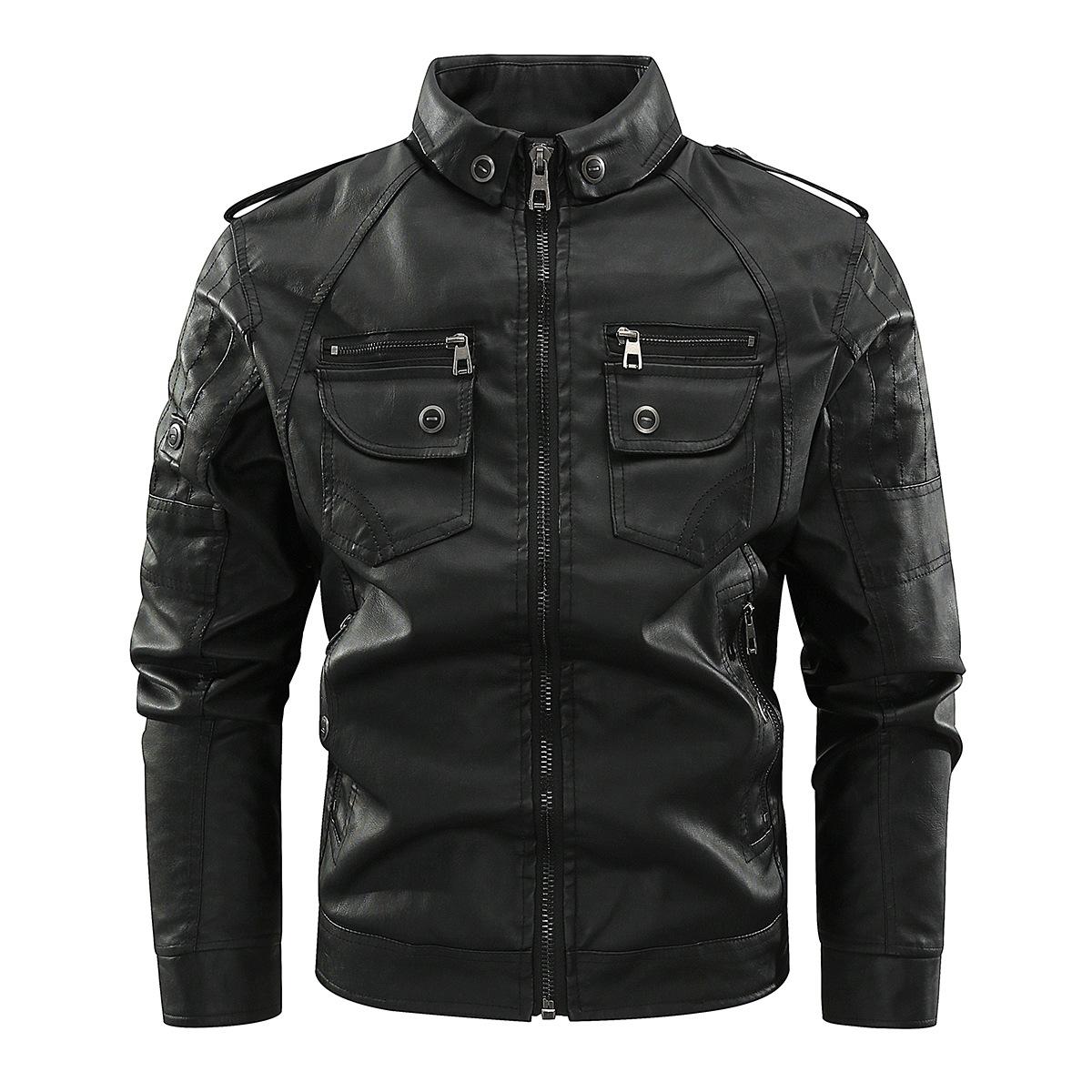 Зимняя стеганая куртка с длинными рукавами большого размера, однотонная винтажная кожаная куртка, мужская модная красивая куртка XL чёрный