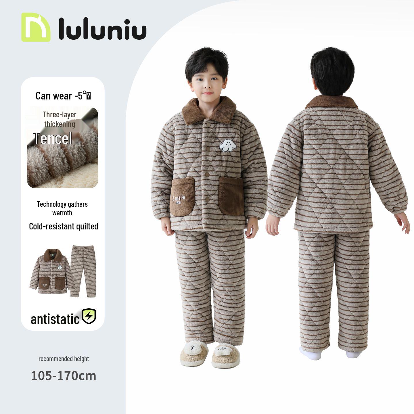 Зимняя стеганая фланелевая пижама для мальчиков: Плотный, теплый коралловый флис для детей школьного возраста 110cm (Height 105-115cm)
