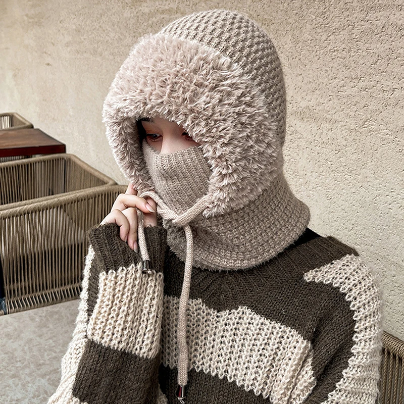 Зимняя теплая велосипедная шапка, маска для лица, морозостойкая термовязаная шапка с завязками, плюшевая Балаклава, шапка с капюшоном, утеплитель для шеи