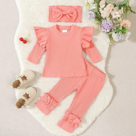 Cethrio Baby Girls Tops and Pants Sets Cotton 2 Piece Casual Outfit Sets Pink Size 12-18 Months