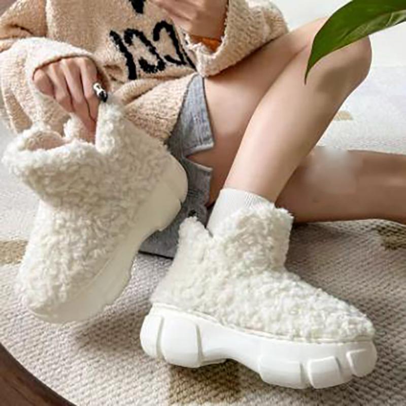 Зимняя теплая обувь для женщин и мужчин, домашние тапочки из хлопка, мягкие плюшевые туфли на платформе для пар, домашние уличные зимние ботинки, пушистая обувь 41 белый