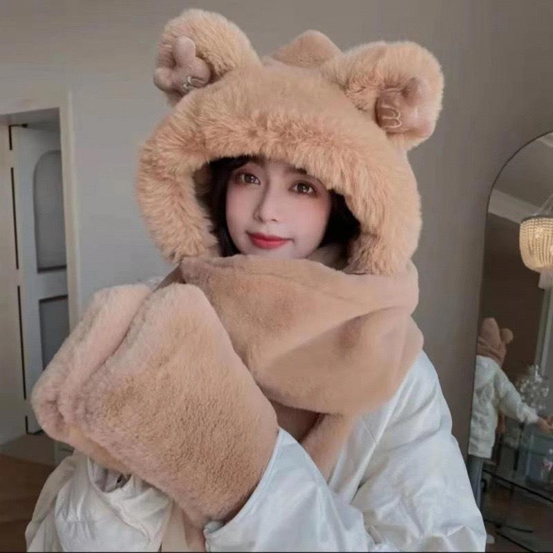 Зимняя теплая плюшевая шапка-медведь шарф перчатки шапка плюшевый утолщенный набор из трех предметов шарф интегрированный