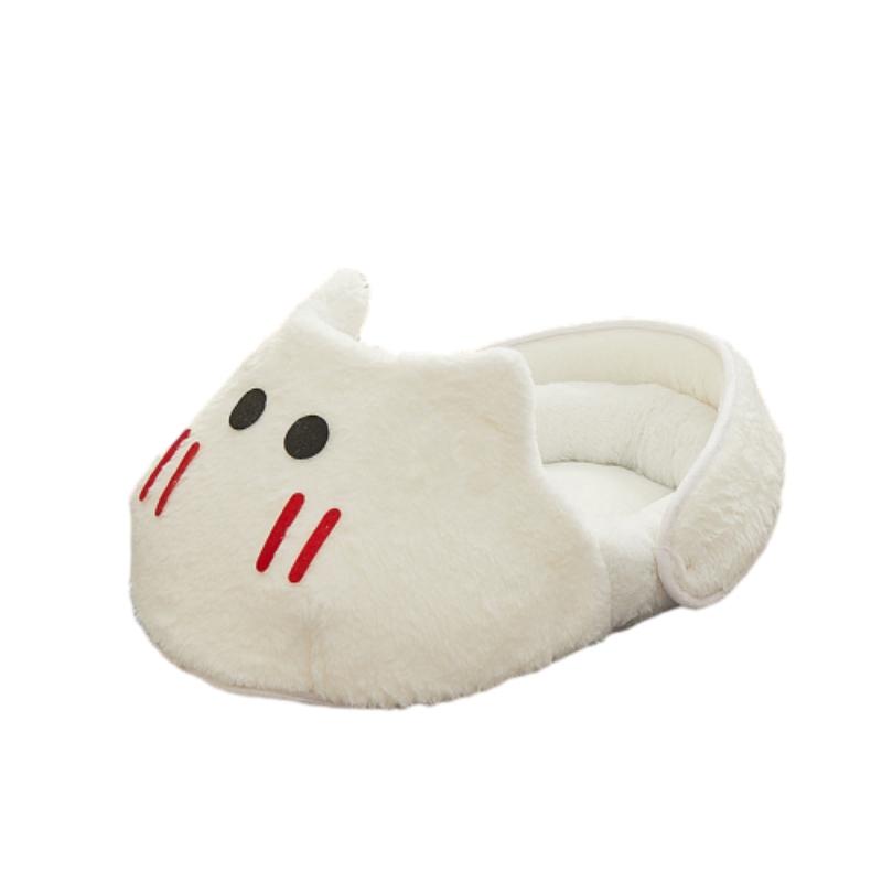 Зимняя теплая тапочковая лежанка для кошек, уютный плюшевый домик для питомцев для домашних кошек, мягкий удобный коврик для питомцев с нескользящим дном L-60x36x26cm белый