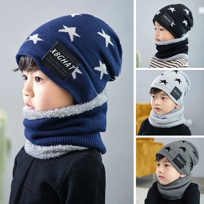 Зимняя теплая удобная вязаная шапка популярная детская шапочка шарф комплект флисовая шапка Милая плотная мягкая прочная детская шапка
