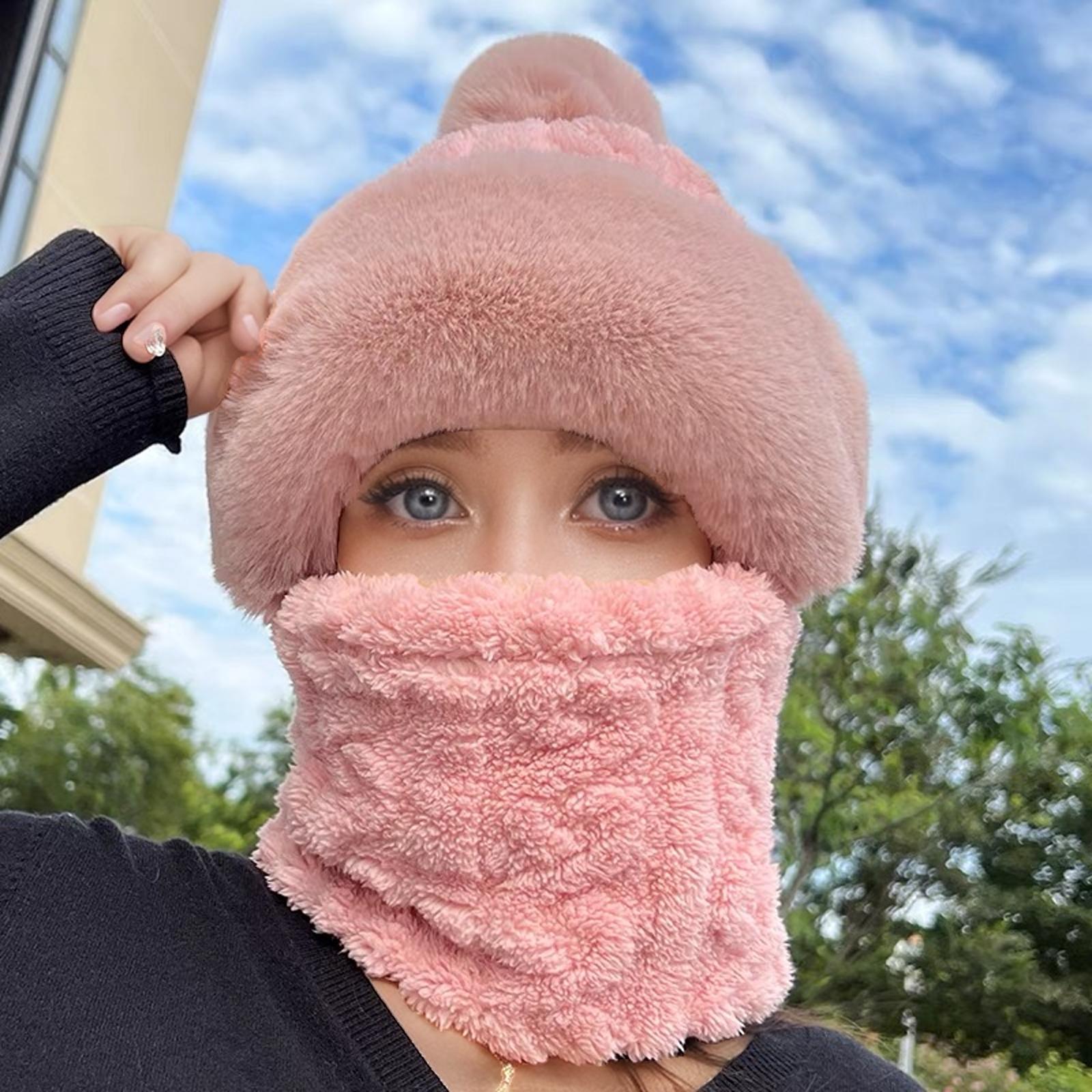 Зимняя теплая шапка, шапки, шарф, теплая дышащая кроличья шерсть, вязаная шапка, шарф для женщин, защитные шапки, ветрозащитные шапки 55-60cm розовый