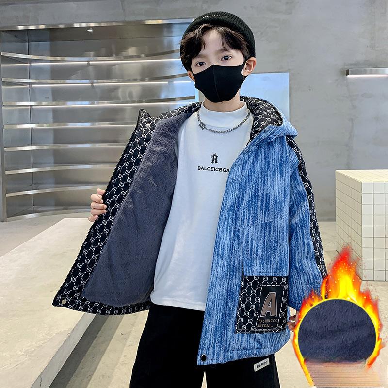 Зимняя утепленная куртка для подростков, пальто, детские пальто, лоскутная одежда для больших мальчиков, верхняя одежда, флисовые пальто для мальчиков, детские парки из хлопка для мальчиков 170 чёрный