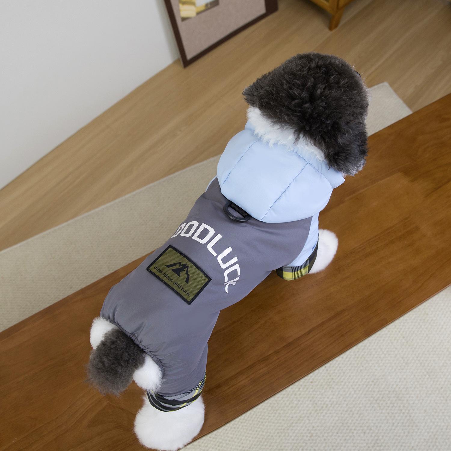 Зимняя утепленная четырехлапая хлопковая куртка для собаки тедди с капюшоном, трех цветов, зимняя одежда для домашних животных малых пород, наряд для холодной погоды S серый
