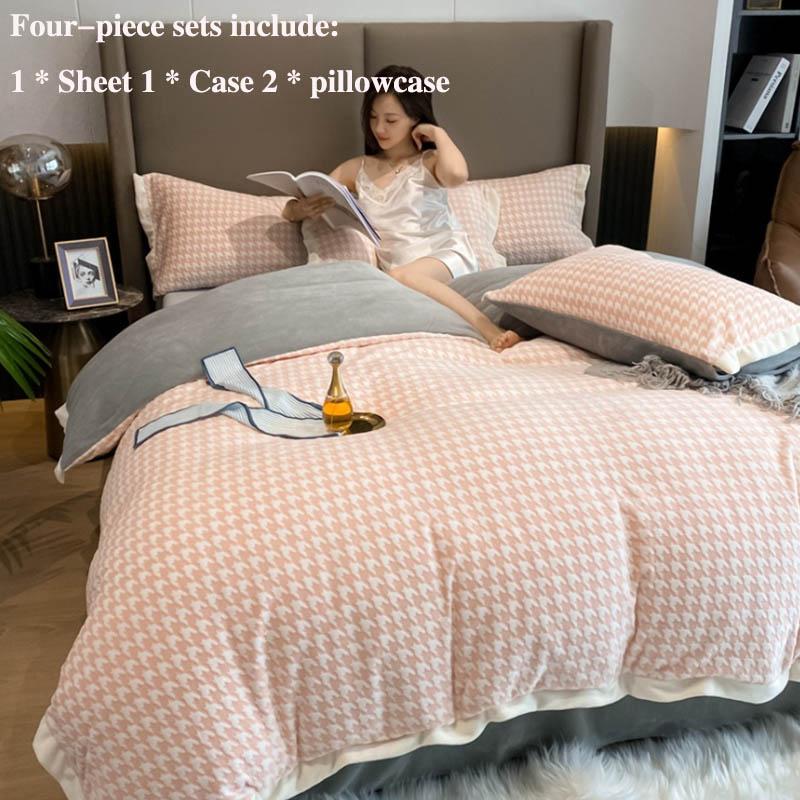 Зимняя утолщенная теплая молочная бархатная кровать, четыре комплекта простых детских бархатных простыней с тысячами птиц Queen