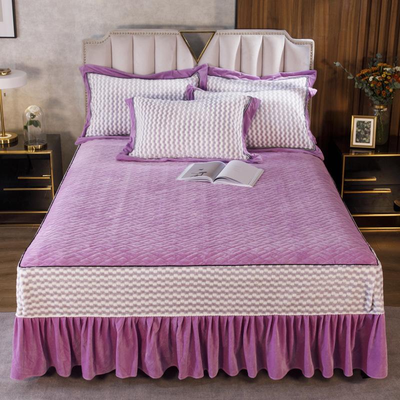 Зимняя утолщенная теплая стеганая юбка из кораллового флиса, королевский размер, окрашенное в пряже покрывало, мягкий чехол на кровать, не включая наволочку 1pc skirt 200x220cm