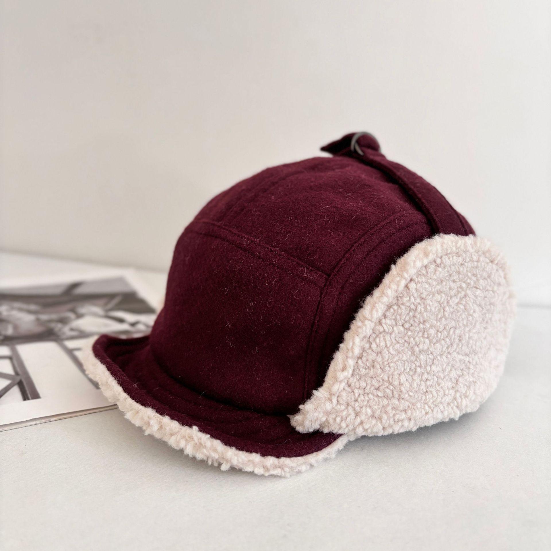 Зимняя шапка для катания на лыжах, холодная, мужская, трендовая, новая, из овечьей шерсти, утолщенная, защитная шапка для ушей, детская M(56-58cm) бордовый