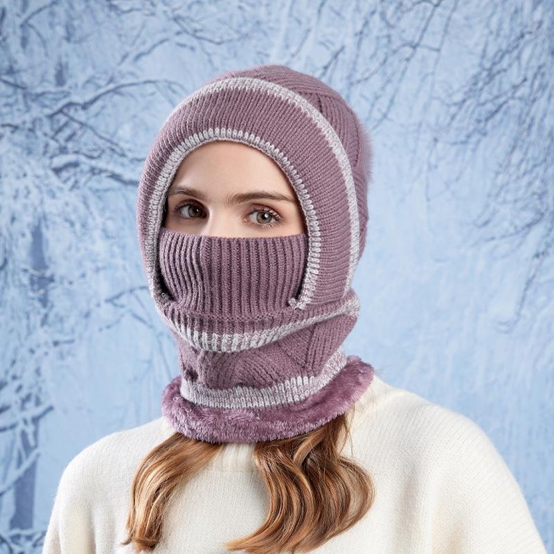 Зимняя шапка-пуловер женская флисовая с защитой ушей шарф-маска интегрированная шапка для велоспорта теплая ветрозащитная вязаная шерстяная шапка