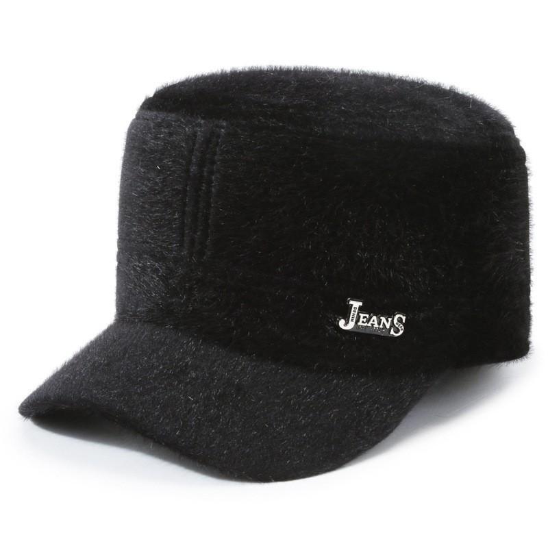 Зимняя шерстяная шапка для старика, средняя плоская, для папы, спортивная, толстая флисовая, теплая, для ушей, базовая линия чёрный