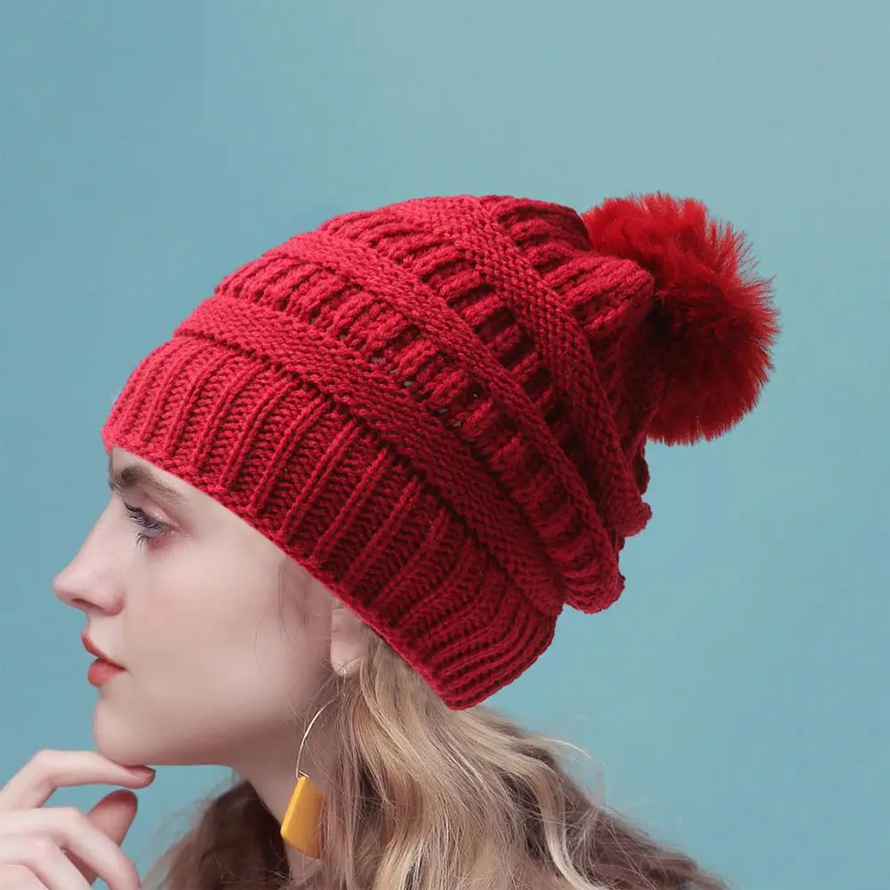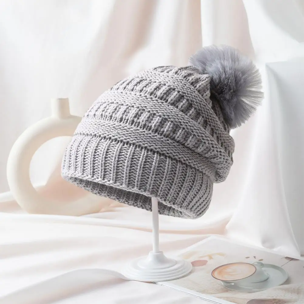Зимняя шерстяная шапка, мягкая теплая вязаная зимняя шапка с плюшевым помпоном, декоративная ветрозащитная эластичная противоскользящая уличная шапка, шапка