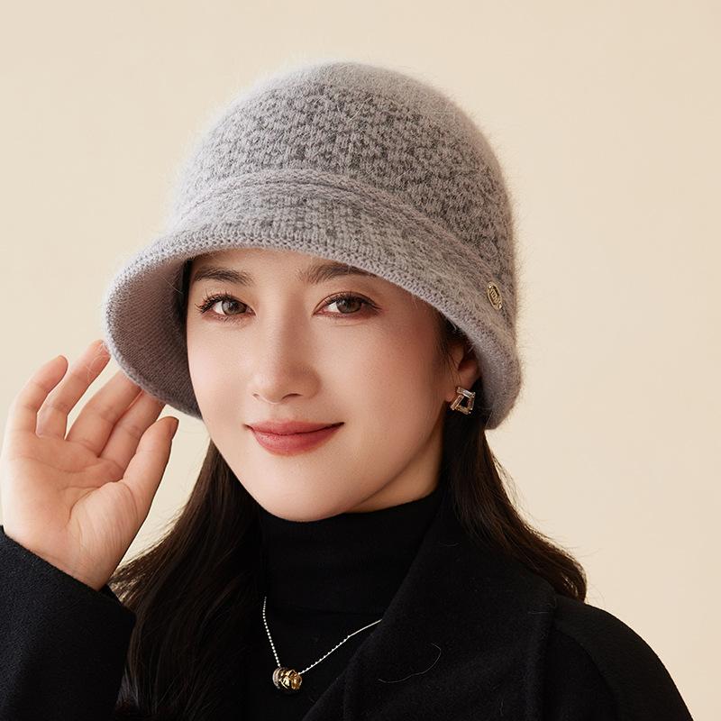 Зимняя шляпа для женщин среднего и пожилого возраста, флисовая, утолщенная, теплая, с защитой ушей, шляпа-ведро из кроличьего меха, вязаная шерстяная шляпа one size серый