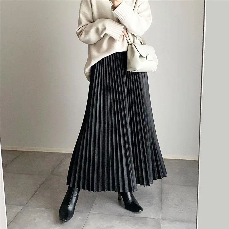 Зимняя японская Южная Корея Новая тонкая плиссированная юбка с высокой талией утолщенная мягкая темпераментная тонкая женская длинная юбк...