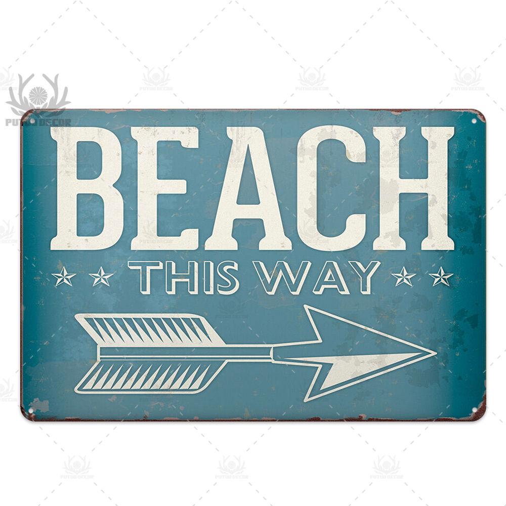 Знак на пляже, металлическая винтажная летняя металлическая настенная табличка, пляжный декор для пляжного бара, пляжного домика, декоративная тарелка на берегу моря 20x30cm(7.8x11.8in)