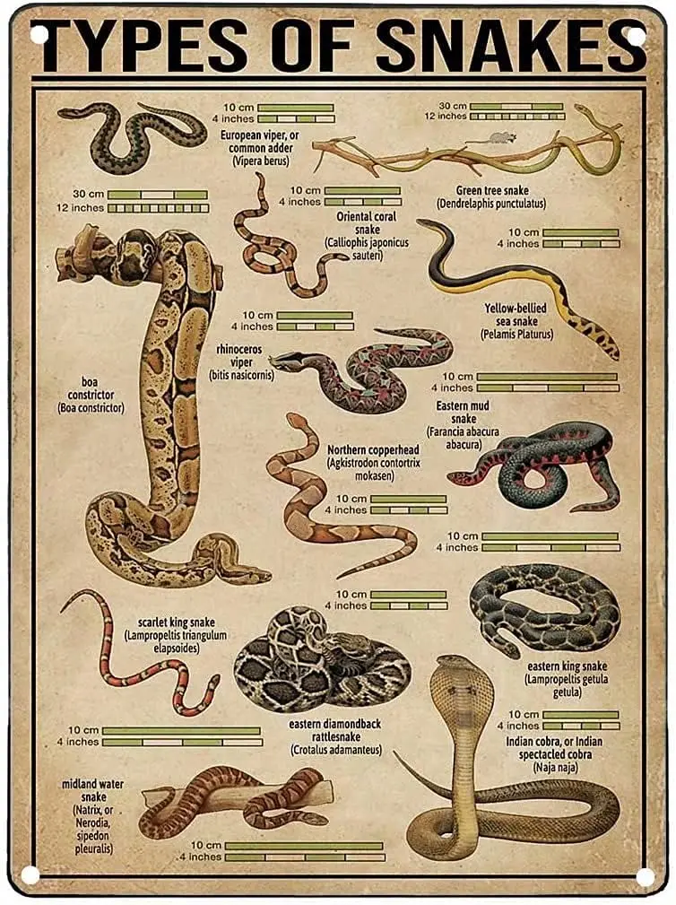 Знания о змеях металлический жестяной знак Тип змеи Ретро печатный плакат школьный зоопарк кафе бар Спальня Ванная Кухня домашняя художественная стена