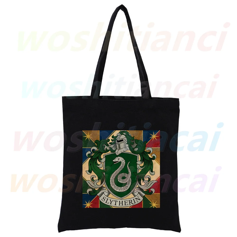 Значок Slytherin, волшебная школьная Холщовая Сумка для покупок в стиле Харадзюку, женская сумка-тоут, эко-сумки через плечо для покупок, Прямая ...