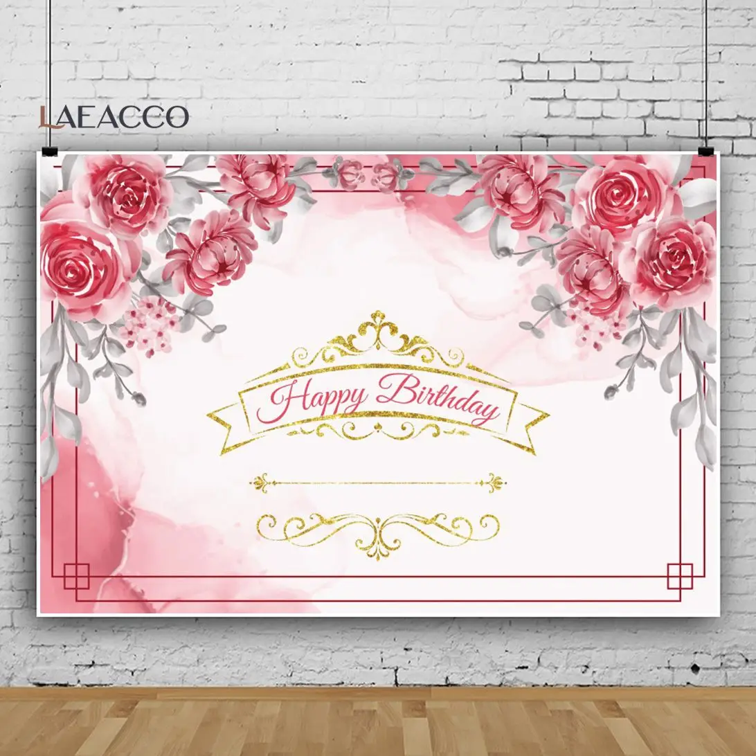 Золотая Корона День Рождения Вечеринка розовый фон для фотосъемки весенний цветочный ребенок дети портрет фотографический фон для фотосту...